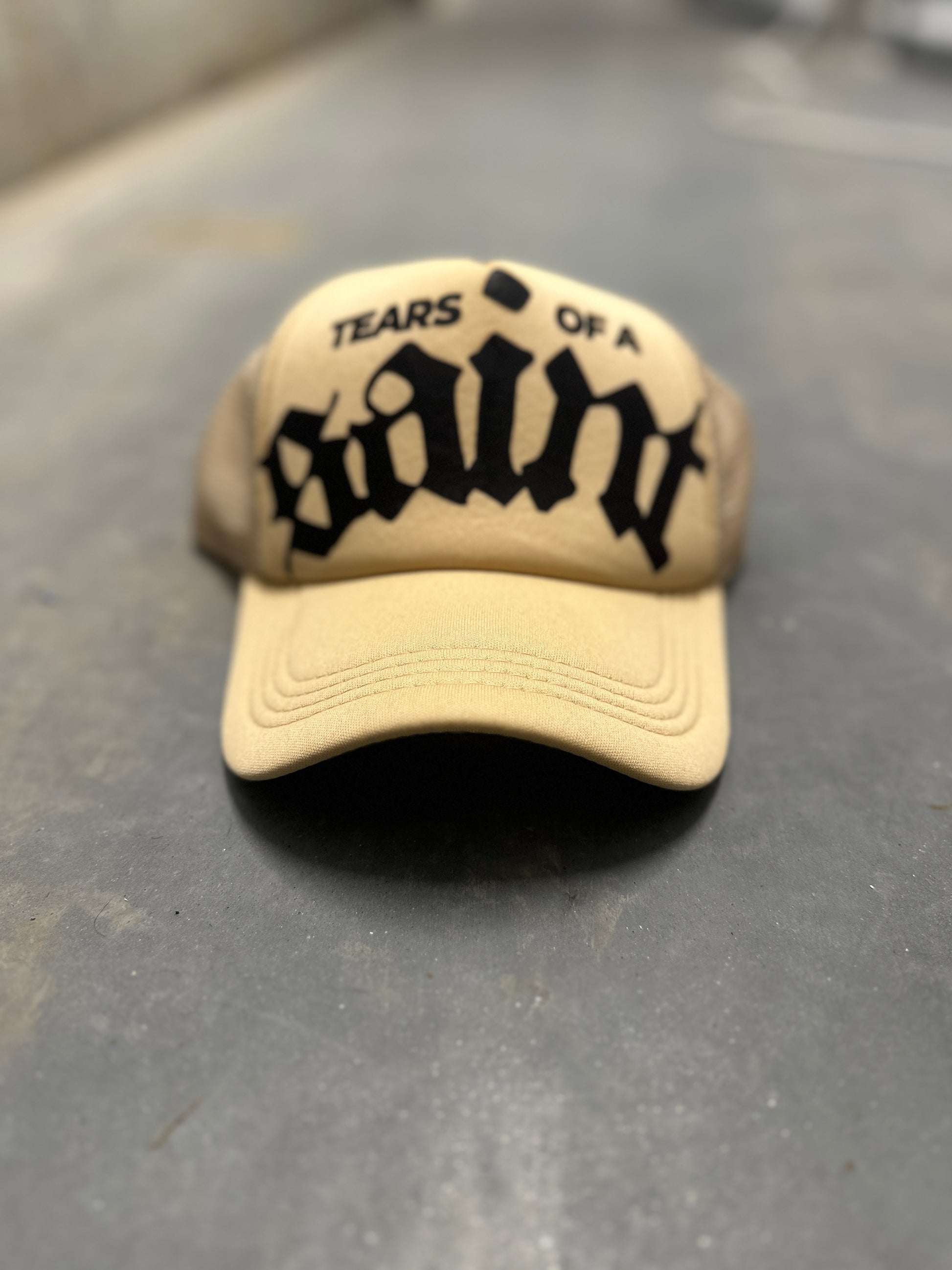 Neutral tan tones with a bold black “Tears of a Saint” logo. Minimal yet gritty — faith never fades.