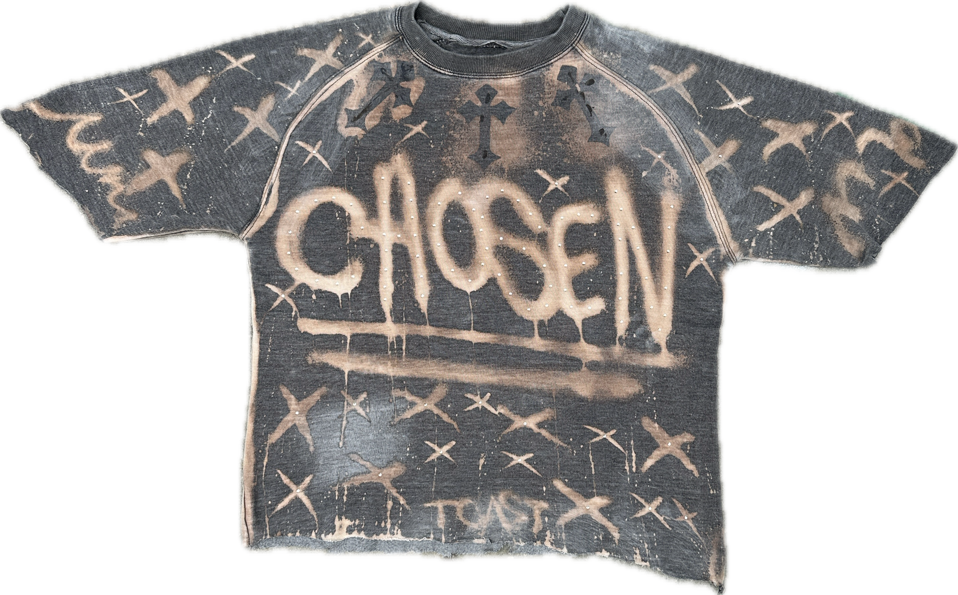Backside screams heritage with “SAINTS 88” sprawled across in spray bleach. X-marks and raw edges finish the piece—a relic of chosen rebellion.